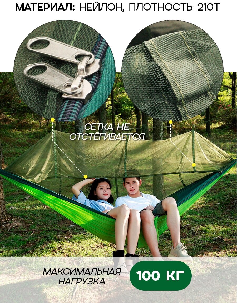 Гамак + москитная сетка, Вся-Чина, нейлон (Зеленый-Темно-зеленый) 260 х 140 см интересное: