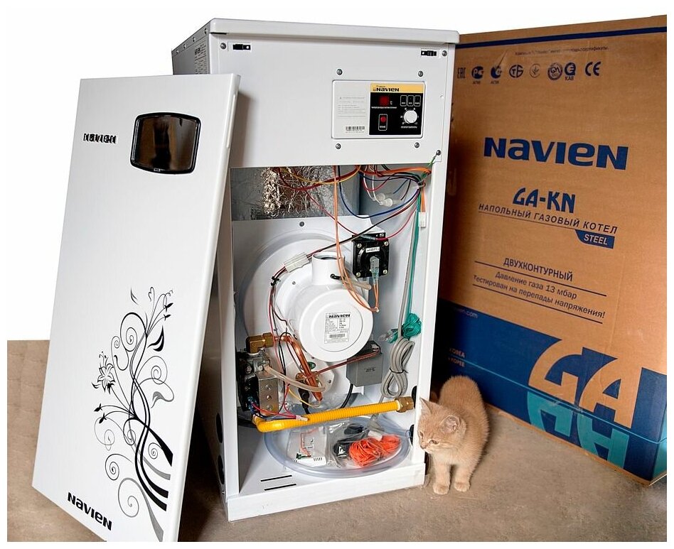 Котел газовый напольный Navien GST-40KN - 40 кВт (двухконтурный, закрытая камера сгорания)