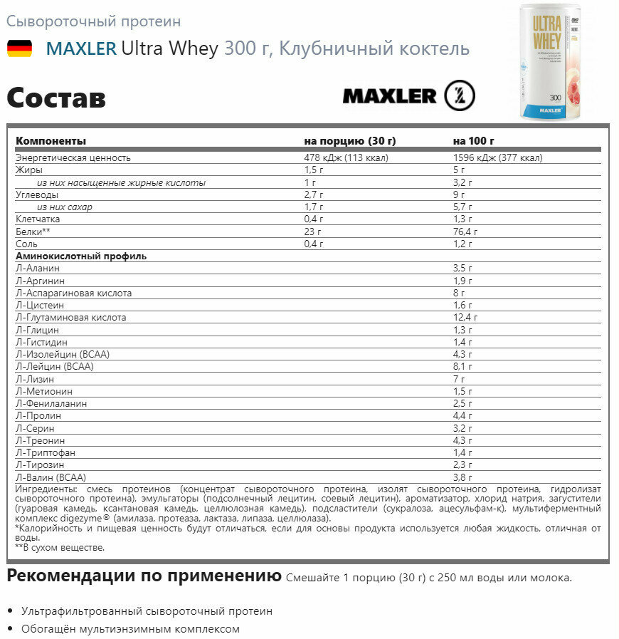 Ниже Вы можете прочитать отзывы на Протеин сывороточный Maxler Ultra Whey 300 гр. - Клубничный молочный коктейль, ознакомится с подробными характеристиками, посмотреть интересные обзоры и фотографии на Протеин сывороточный Maxler Ultra Whey 300 гр. - Клубничный молочный коктейль.