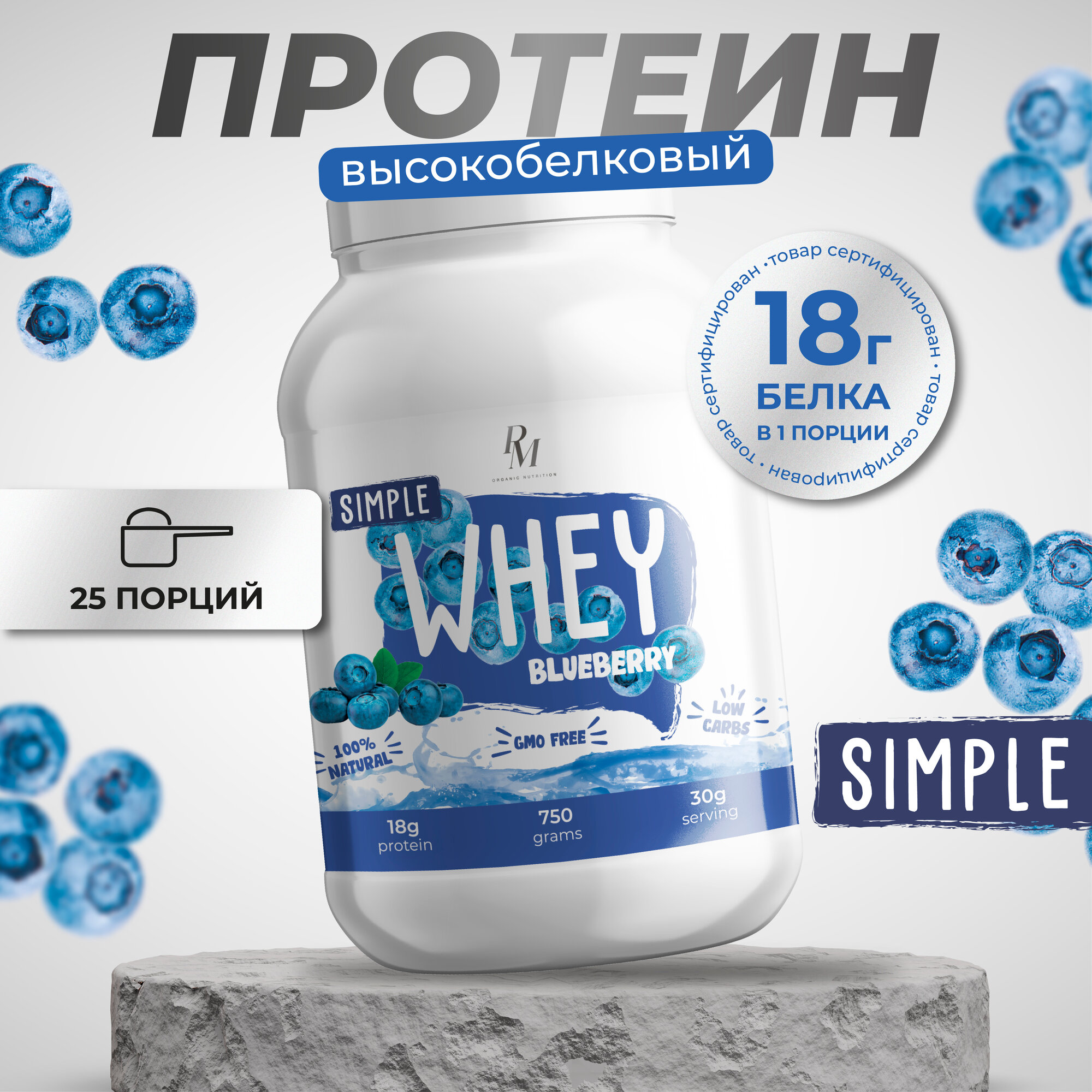 Протеин Simple Whey PM-organic nutrition, 750 гр, черника интересное: