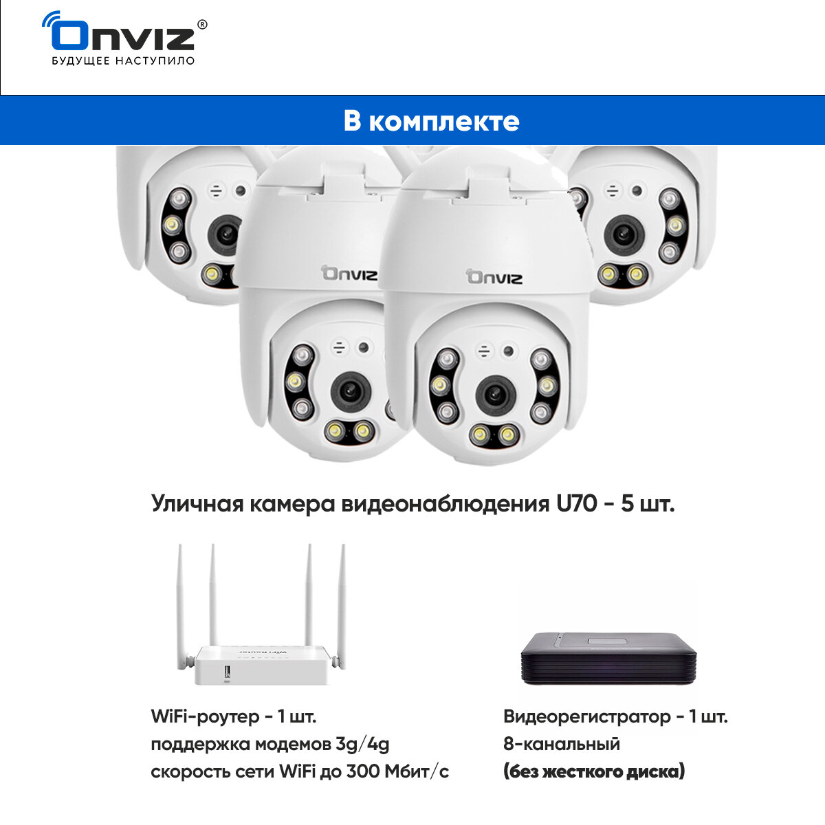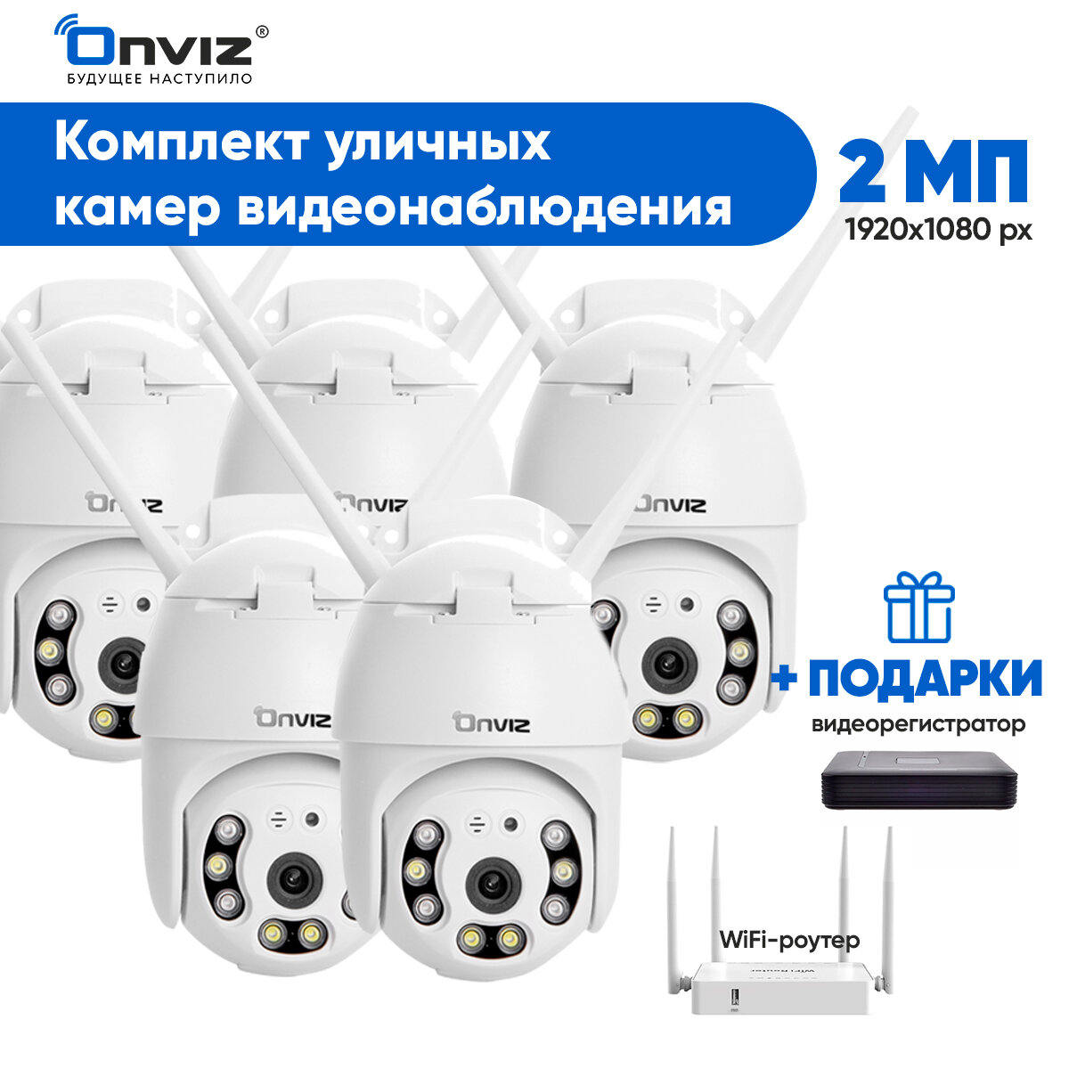 Комплект из 5-ти купольных поворотных Wi-Fi камер видеонаблюдения Onviz U70 беспроводных / набор уличных камер / наружная скрытая для дома / для дачи интересное: