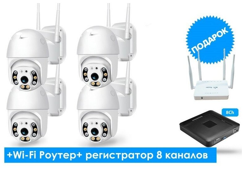 | Подробная комплектация | камера - 4 шт, WiFi роутер с поддержкой 1 шт, блок питания камеры от сети 220 В - 4 шт, инструкция на русском языке - 1 шт, коробка - 1 шт. |
