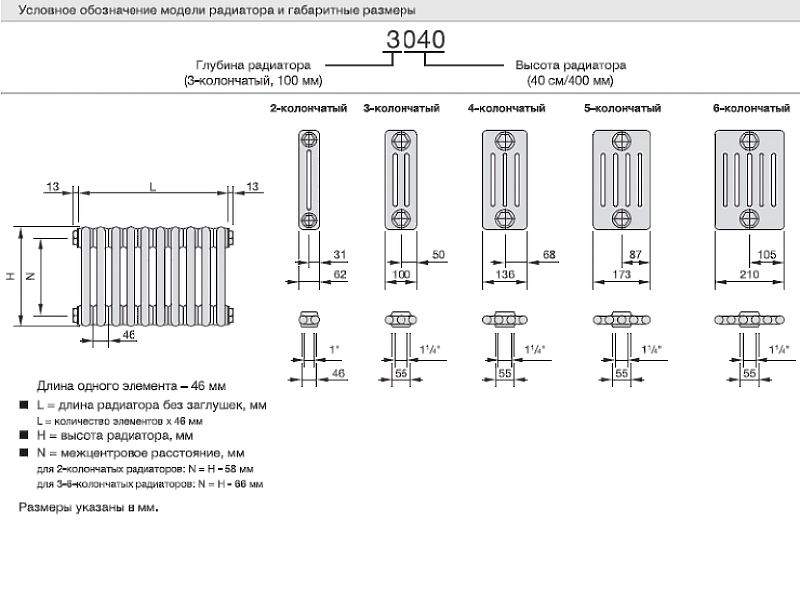 Радиатор трубчатый Zehnder Charleston Retrofit 3057, 16 сек.1/2 ниж.подк. 0325 TL (кроншт.в компл)