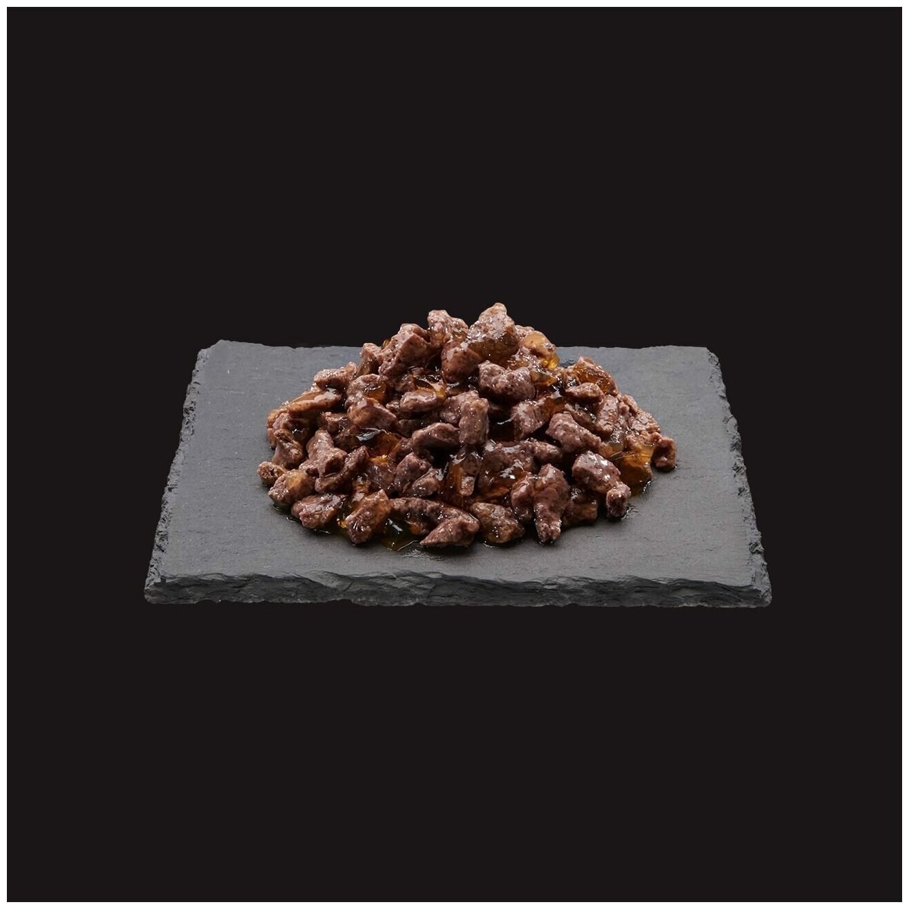 | Состав | мясные кусочки (мясо и субпродукты (в том числе говядина более 40% и курица), минеральные вещества, витамины, мякоть сахарной свеклы, таурин) и желе (вода, аминокислоты, загустители, сахара |