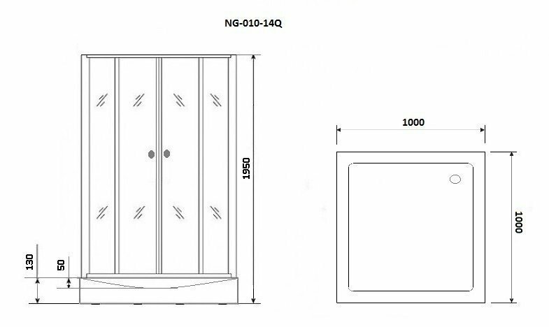 Душевой уголок Niagara NG- 010-14Q BLACK (1000х1000х1950) низкий поддон(13см) стекло мозаика