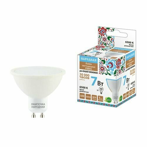 Купить Лампа светодиодная PAR16 7 Вт, 230 В, 6500 К, GU10 Народная