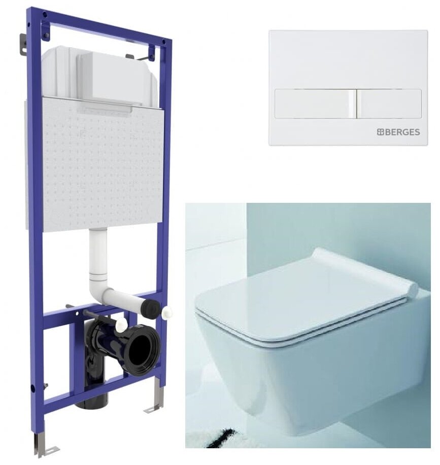 Инсталляция BERGES для скрытого монтажа NOVUM L1 с кнопкой белая,унитаз подвесной безободковый Azario Boca 52 см (AZ-2002) интересное: