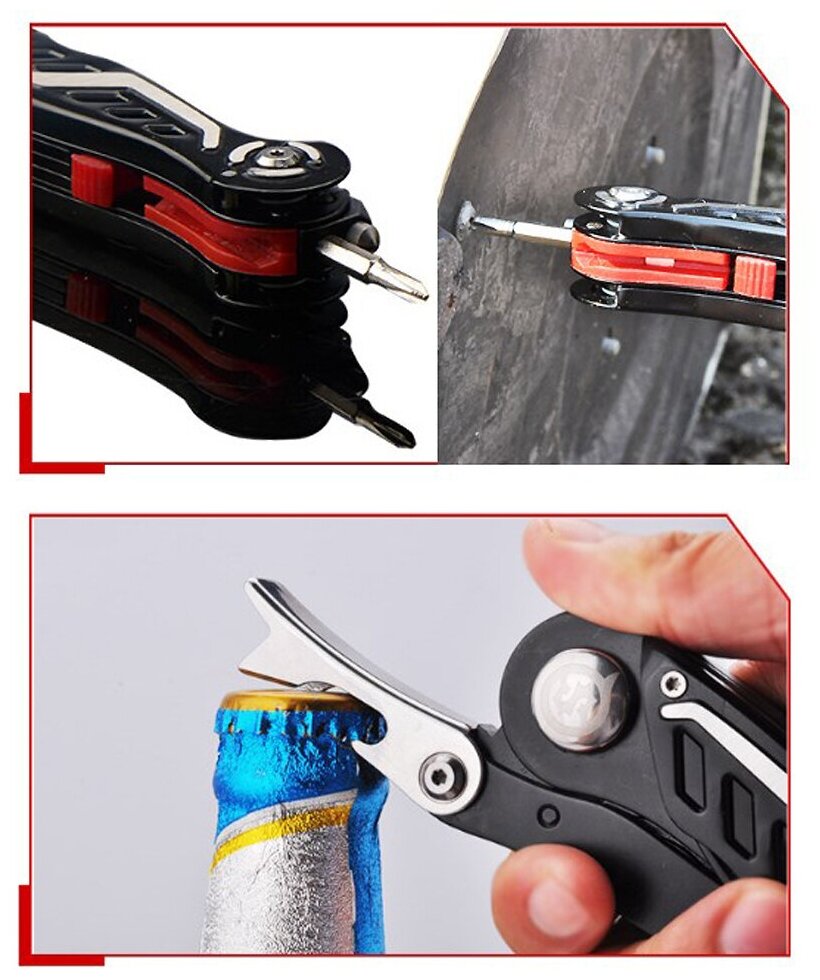 | Инструменты (функции) | кусачки / нож / отвертка / открывалка для бутылок / плоскогубцы / свисток / зажим / интерфейс отвертки / канаторез / кремневый брусок / кресало / резак ремней |