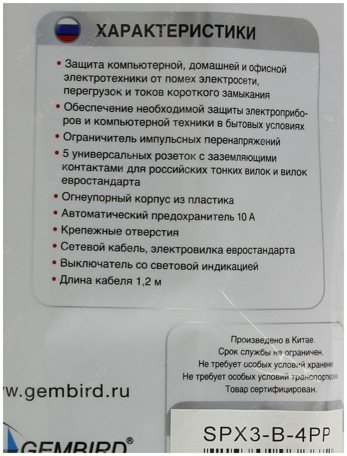 Сетевой фильтр для ИБП Gembird 5 розеток (SPX3-B-4PP) интересное: