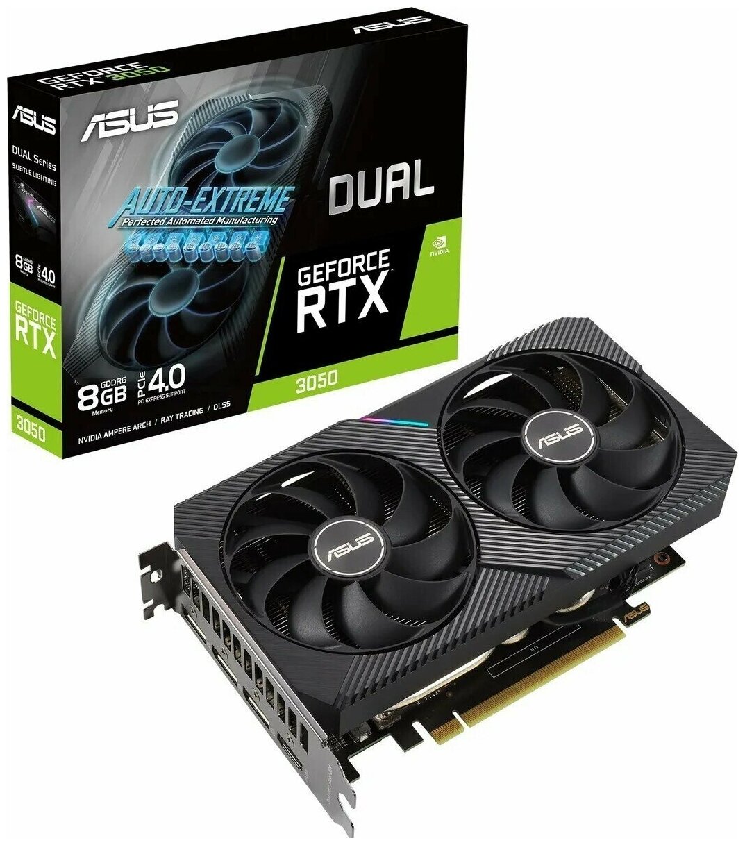 Купить Видеокарта Asus PCI-E 4.0 DUAL-RTX3050-O8G NVIDIA GeForce RTX 305 0 8192Mb 128 GDDR6 1822/14000 HDMIx1 DPx3 HDCP Ret