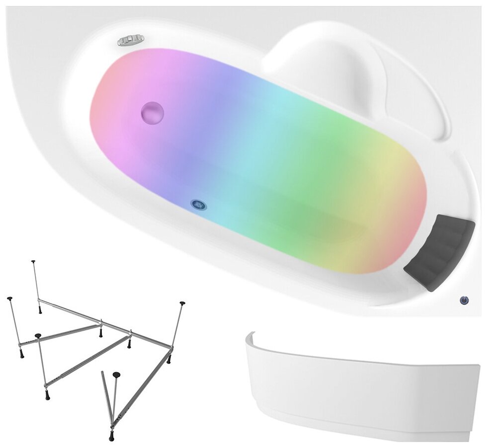 Акриловая ванна 140х95 см Lavinia Boho Bell Pro набор 5 в 1 S4-370214PL: угловая ванна (левый разворот), каркас, подголовник, экран, хромотерапия