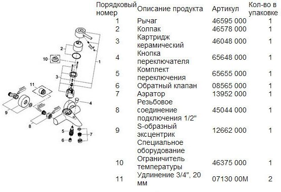 | Форма излива | традиционная |