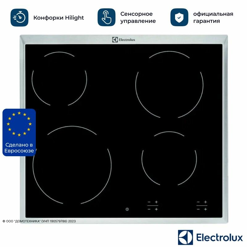 Встраиваемая электрическая панель ELECTROLUX/ Электрическая варочная панель, 60 см, 4 конфорки, черный цвет, рама из нерж