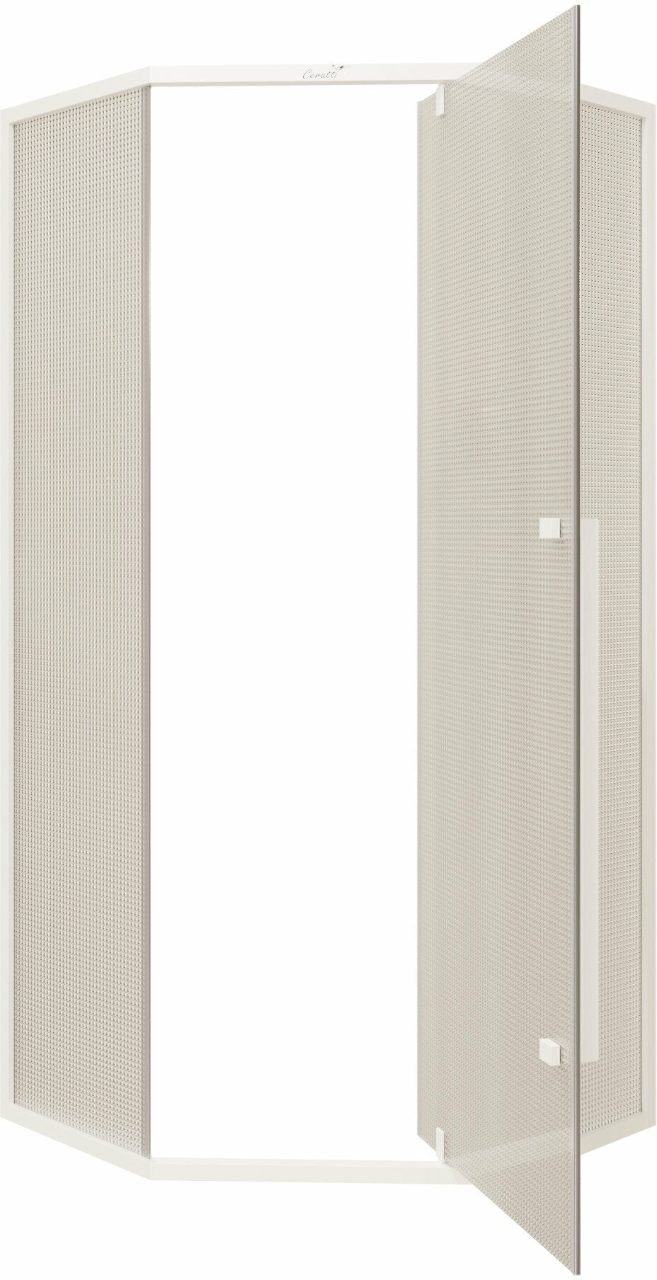 | Дополнительная информация | Душевой уголок CERUTTI SPA 90х90 C3AWD Без поддона Профиль белый Стекло рифленое в современном стиле |
