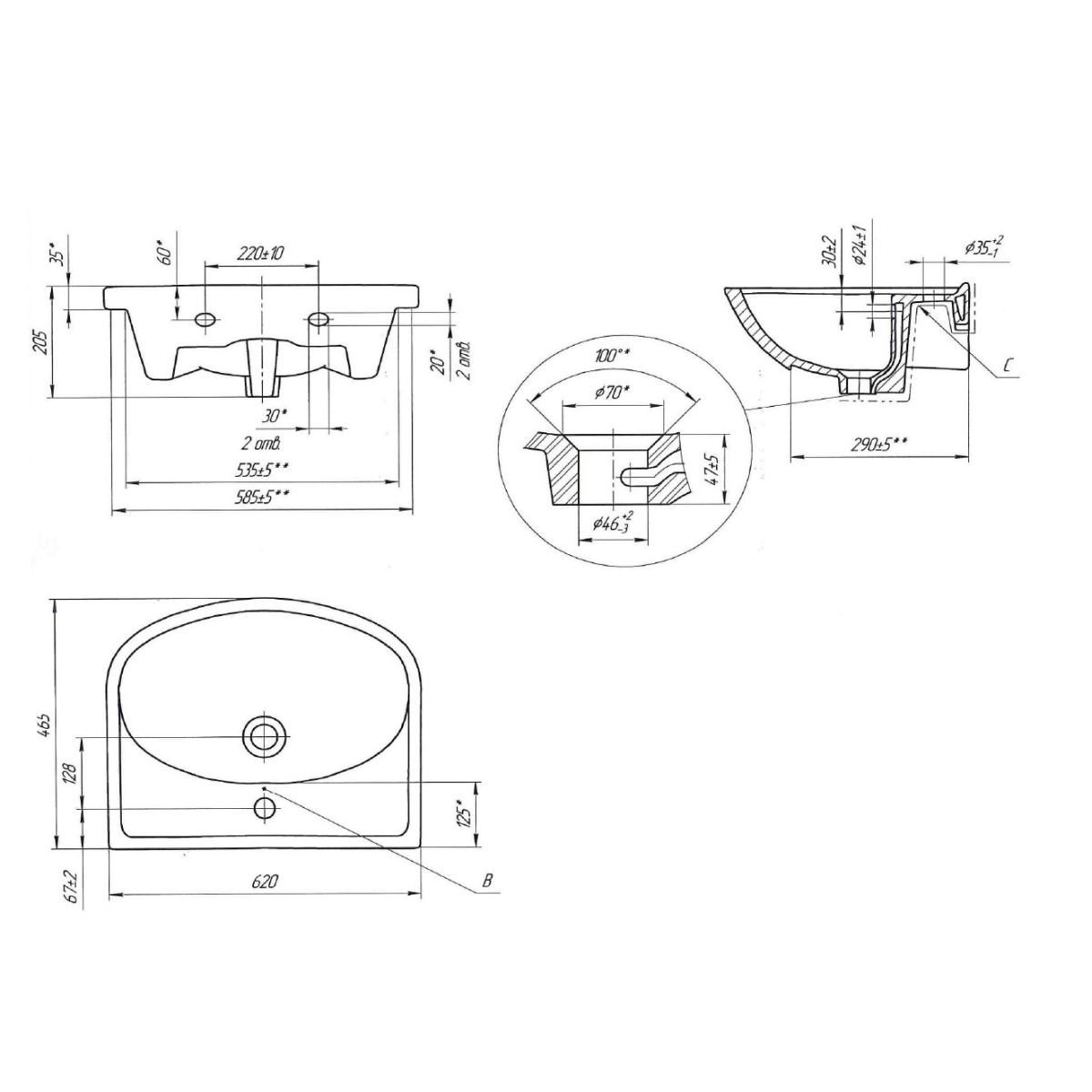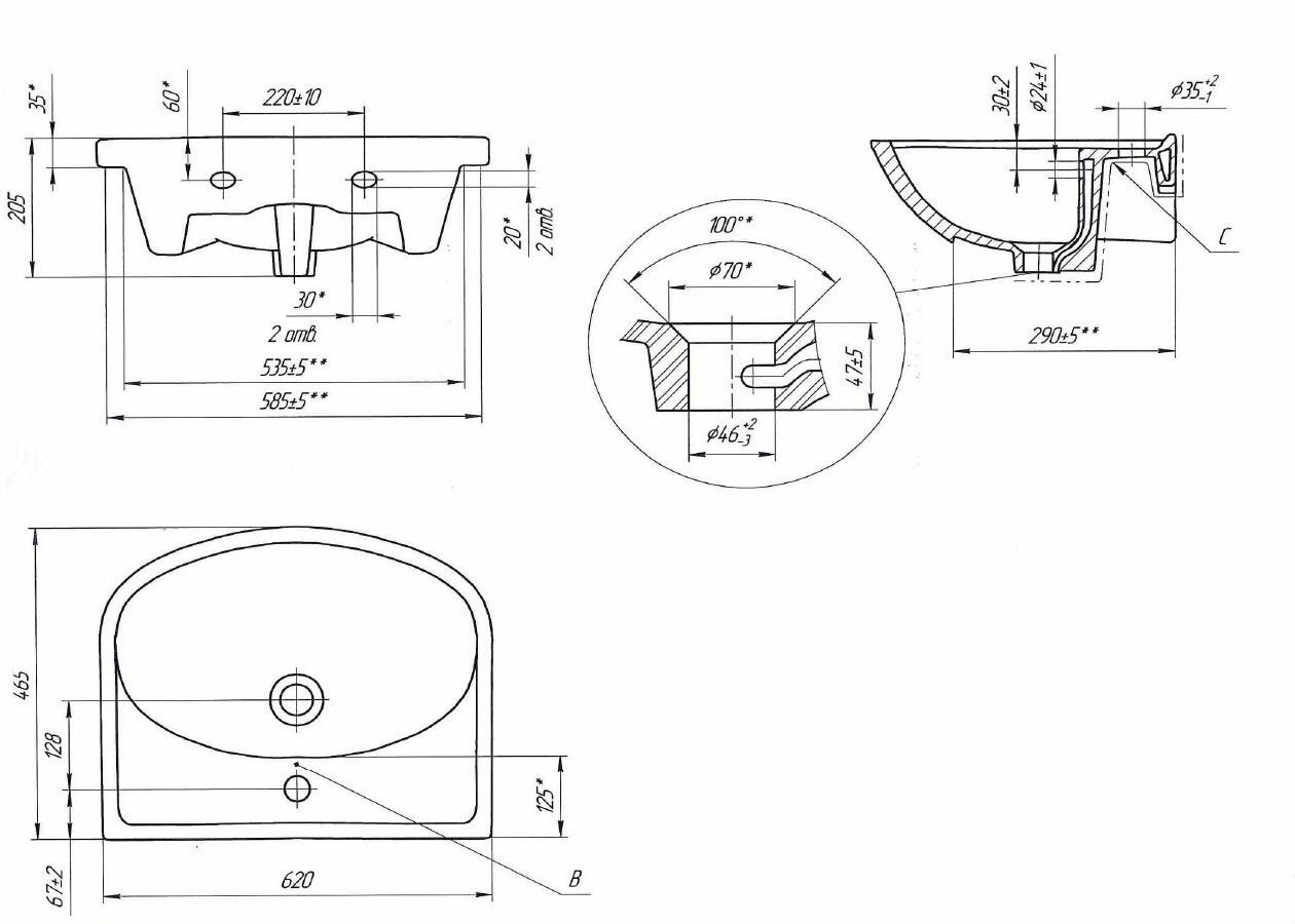 | Расположение отверстия под смеситель | в центре |