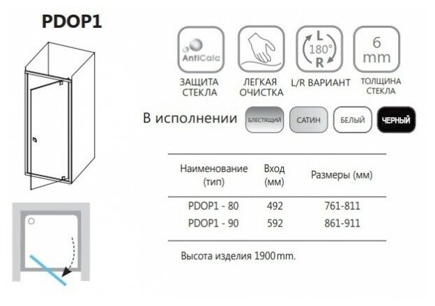 Душевая дверь поворотного типа Ravak Pivot PDOP1-80 блестящий+транспарент интересное: