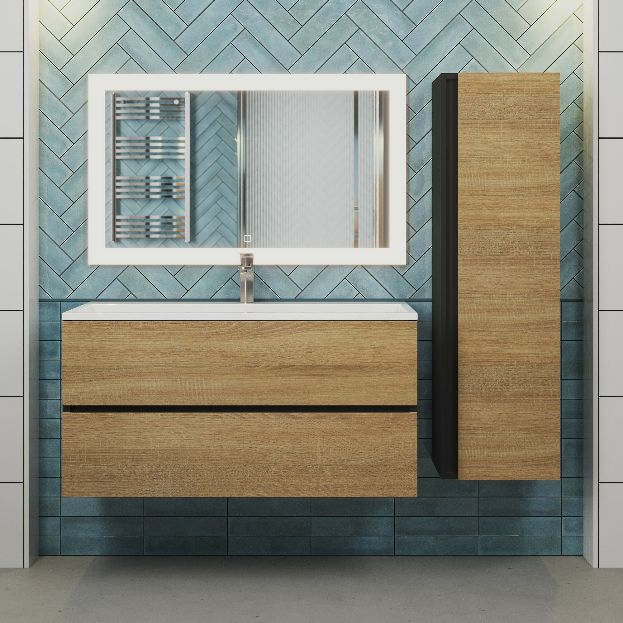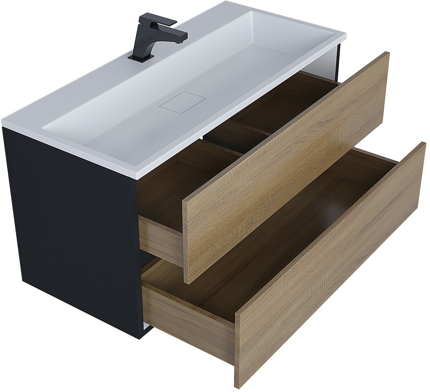 Тумба с раковиной для ванной Uperwood Barsa 100 см, раковина белая, подвесная тумба черная/дуб сонома интересное: