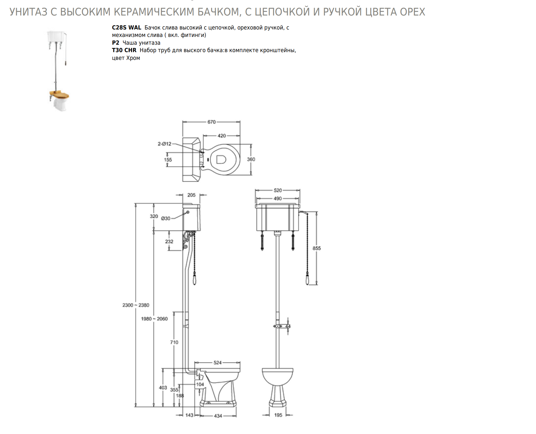 Унитаз Burlington C28S WAL+ P2+T30 CHR с высоким бачком интересное: