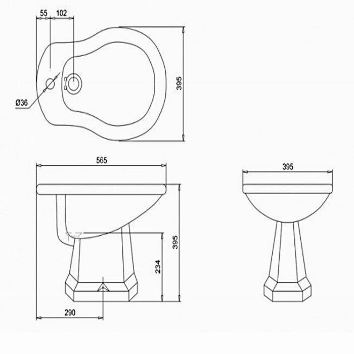 Burlington Classic Биде напольное 39,5x56,5 см, с 1-им отверстием, цвет: белый P4