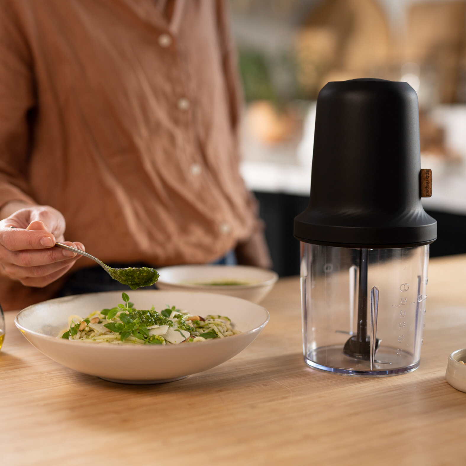 | Отзыв: | Сломался ручной измельчель, решила приобрести электрический, им пользоваться намного удобнее, приятный матовый материал, интересный дизайн. С лёгкостью и быстро измельчает сыр, зелень, овощи, иногда использую для мяса, делаю соусы. Ничего не вытекает. Мыть легко. Оригинальный дизайн упаковки. Сделан во Франции. |