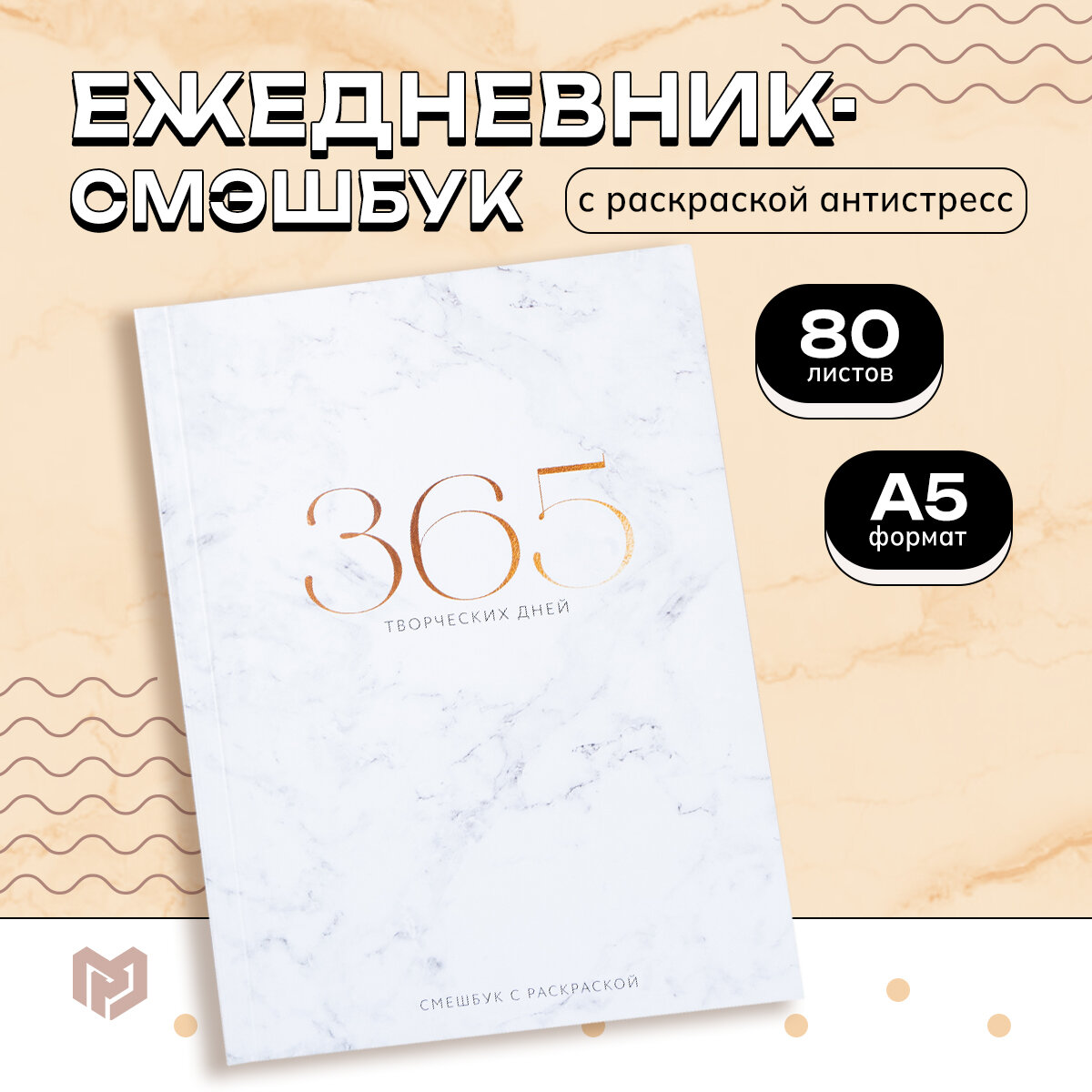 ArtFox Ежедневник-смешбук с раскраской «365 творческий дней», А5 80 листов
