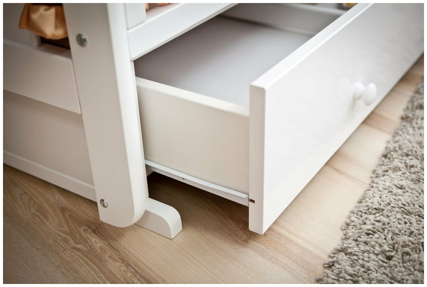 -ящик ужасно открывается, еле-еле -фиксаторы маятника расшатались... теперь кроватка все равно маячит где-то в 1см |