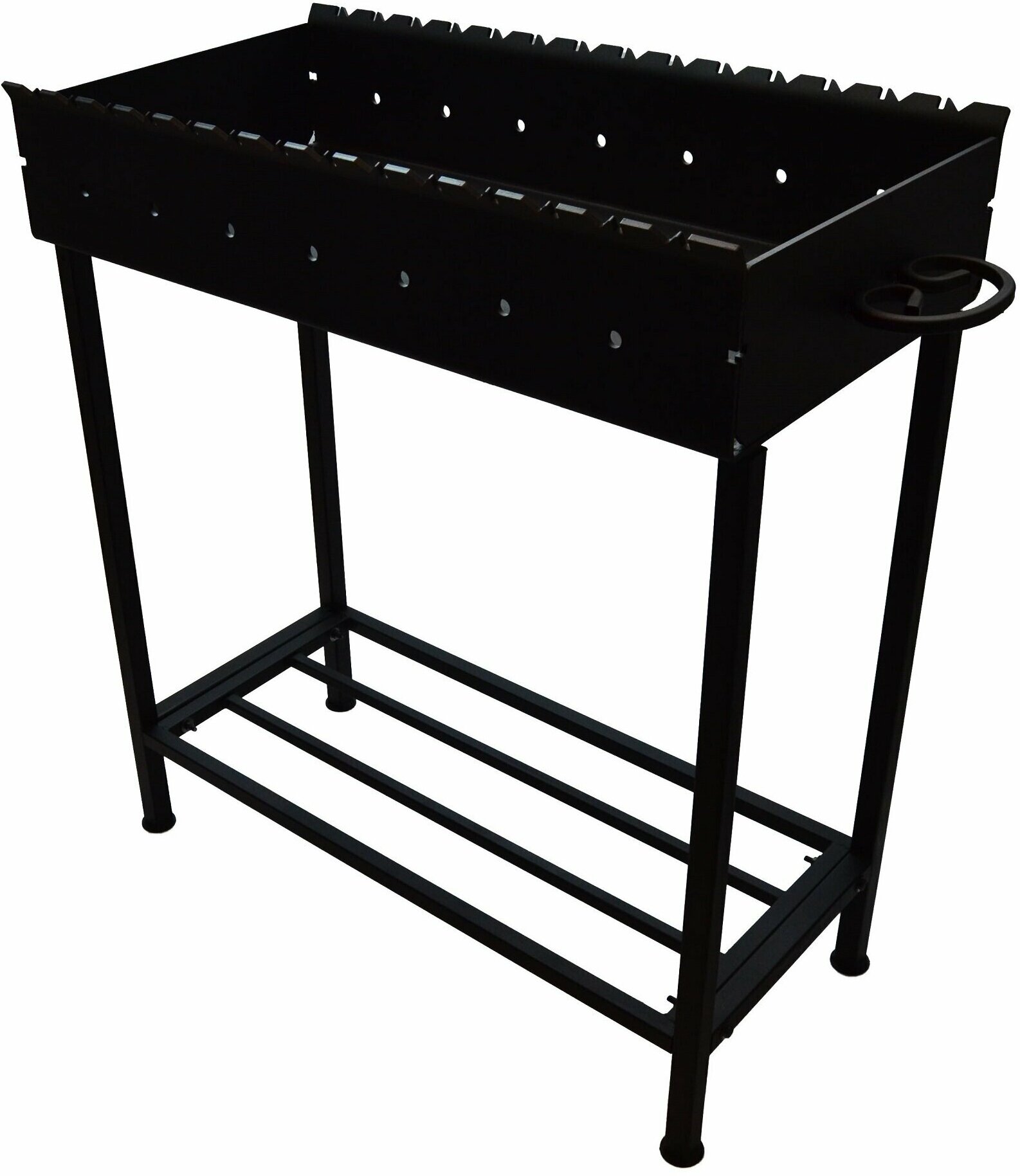| Плюсы: | Металл толстый, как броня, разные по форме отверстия по краям обеспечивают филигранное управление углом обжарки при приготовлении мяса на шампурах. вентиляционные отверстия обеспечивают бесперебойный доступ окисляющего агента ( кислорода ) к активной зоне горения углей. |