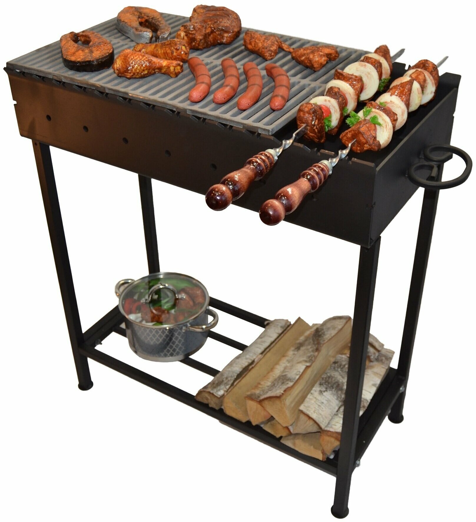 | Плюсы: | крепкий, вместительный, удобные отверстия для шампуров |