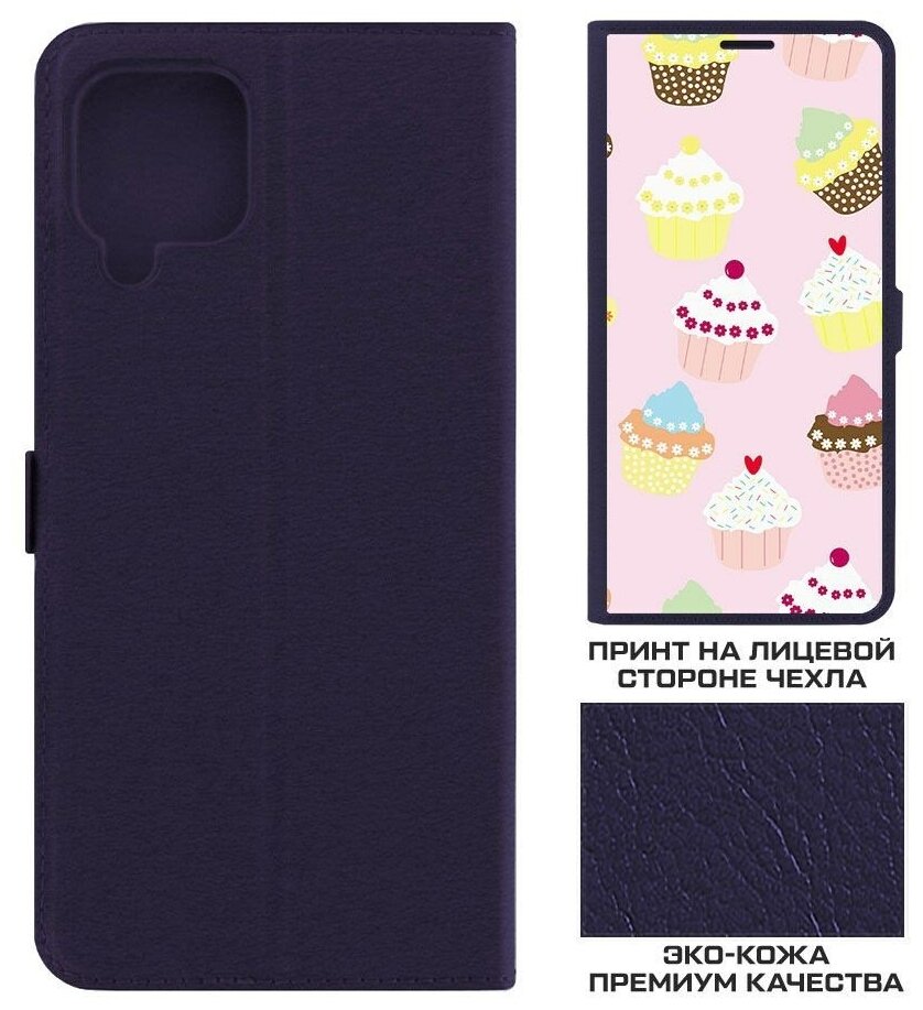 Чехол-книжка / Защитный кейс / Krutoff Eco Book для Samsung Galaxy A22 4G (A225) Пироженки (синий) интересное: