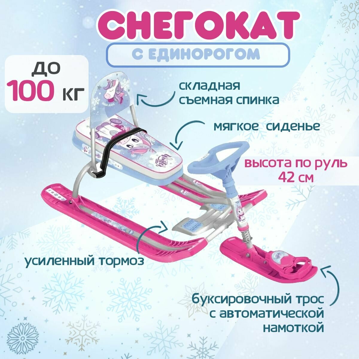 Купить Nika Kids Снегокат «Тимка спорт 4-1 Единорог», ТС4-1М/ЕР, со спинкой и ремнём безопасности, цвет розовый/серый/сиреневый