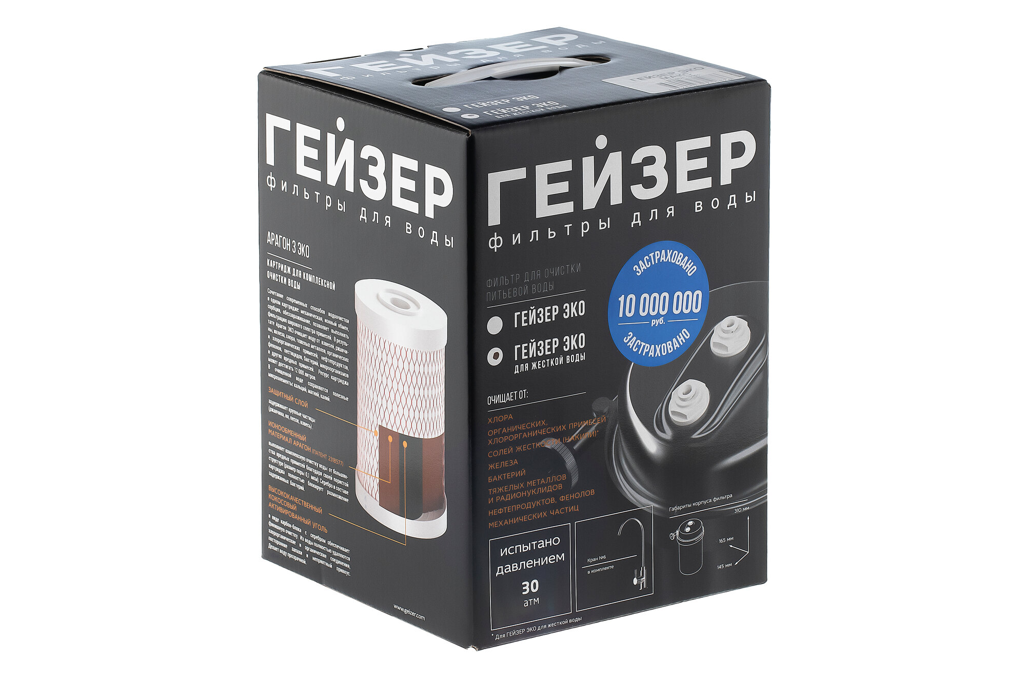 Фильтр для воды под мойку Гейзер ЭКО, с краном, уникальный материал Арагон, высокая скорость фильтрации, 18055