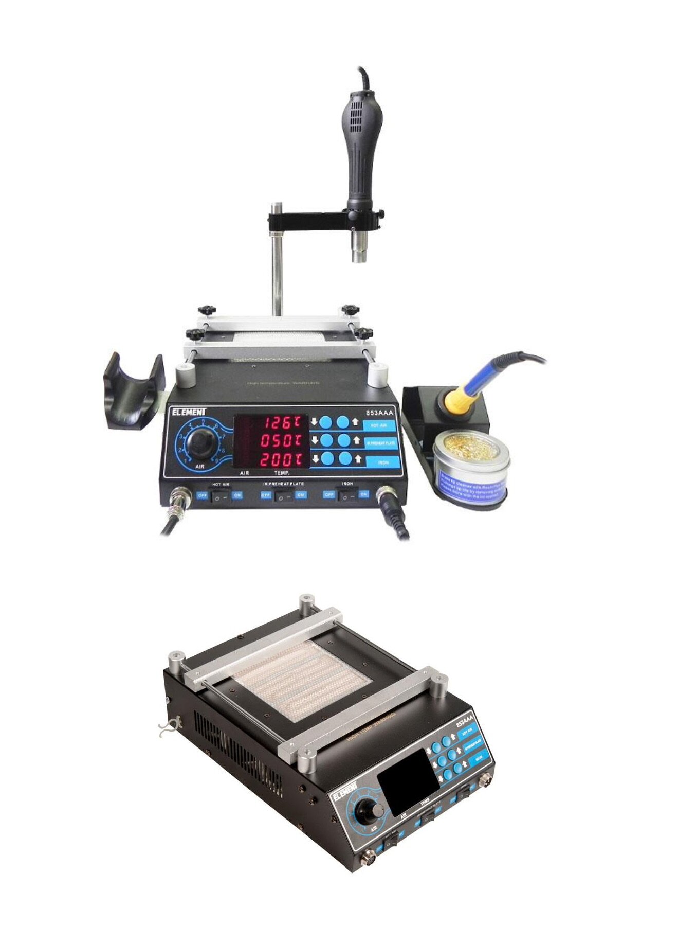 Soldering station / Паяльная станция Element 853AAA, 3-в-1 (преднагреватель, паяльник, фен) интересное: