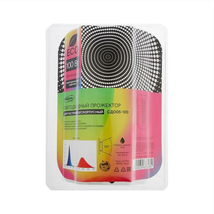 Luazon Lighting Фитопрожектор светодиодный Luazon СДО09-100, 100 Вт, IP65, 220В, мультиспектр., бескорпусный интересное: