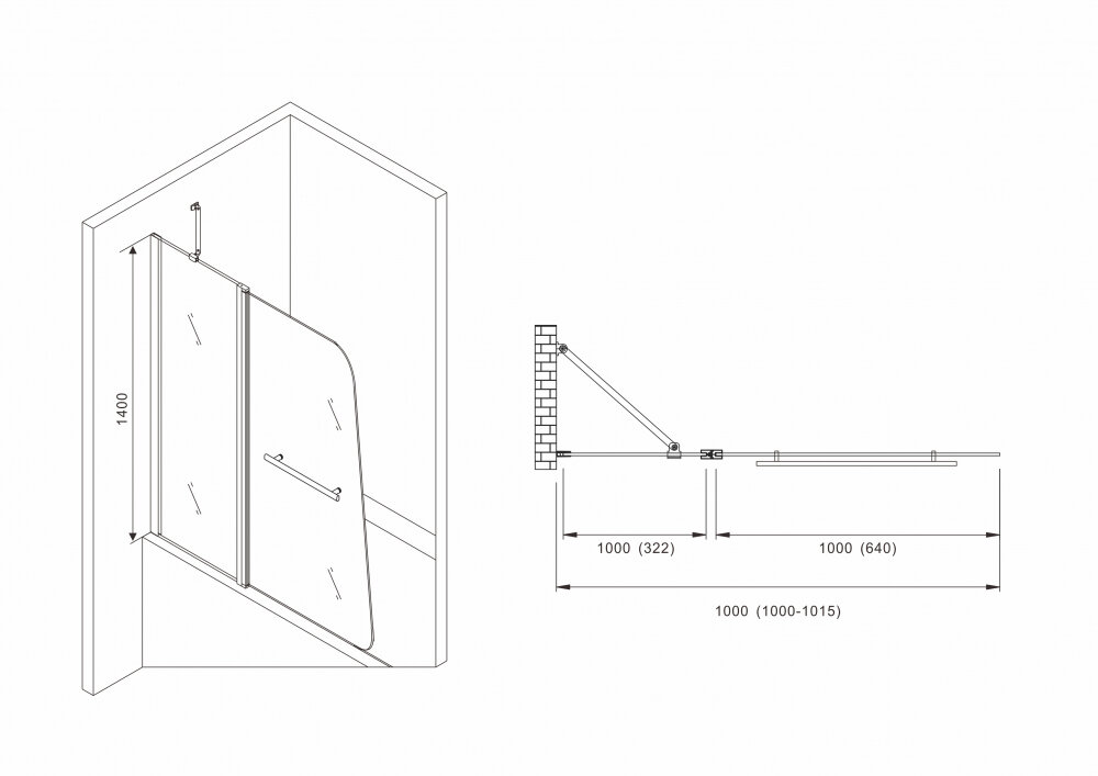 Шторка для ванны Abber Immer Offen 100x140 AG72100B профиль черный, стекло с рисунком