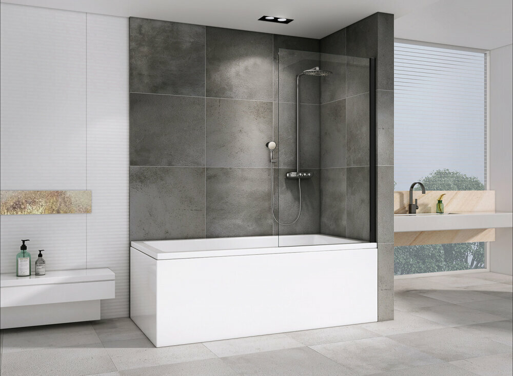 Шторка для ванны Abber Immer Offen 100x140 AG72100B профиль черный, стекло с рисунком