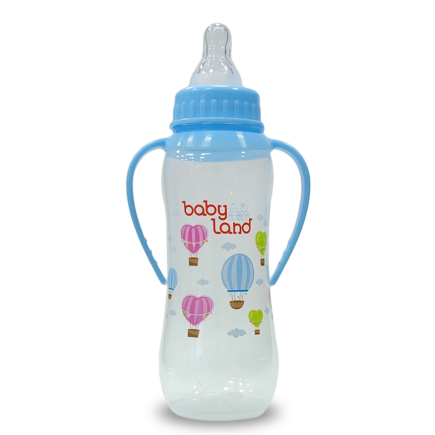 Бутылочка Baby Land с колпачком-игрушкой 240мл с силиконовой анатомической соской Air System голубой