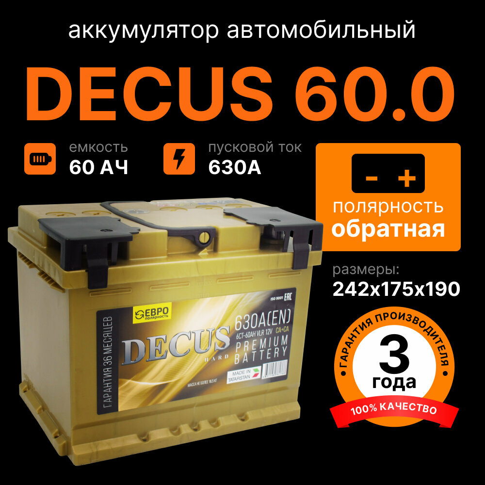 Аккумулятор DECUS Золото 60 Ач обратная полярность интересное:
