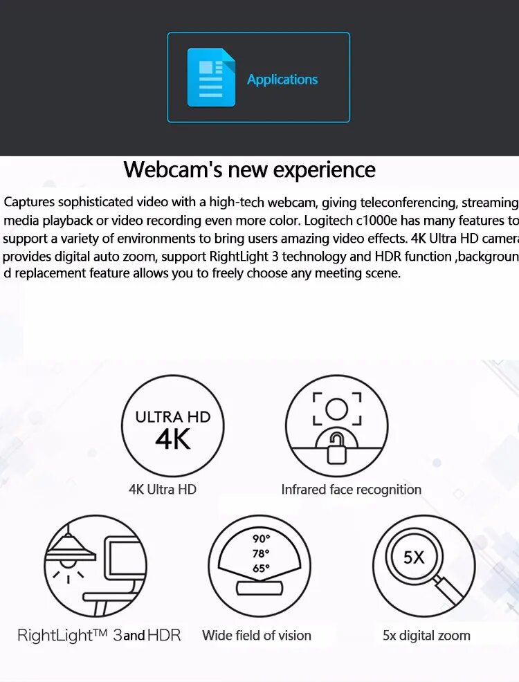 Веб-камера Logitech Brio C1000e , черный,видеозвонки высокого качества В формате 4K HD