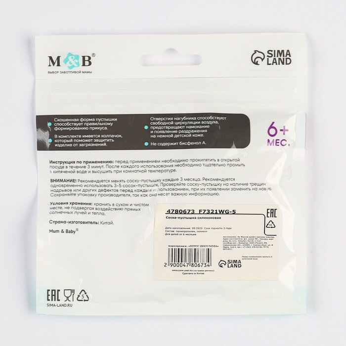 Mum&Baby Соска-пустышка ортодонтическая, силикон, +0мес., цвет бирюзовый