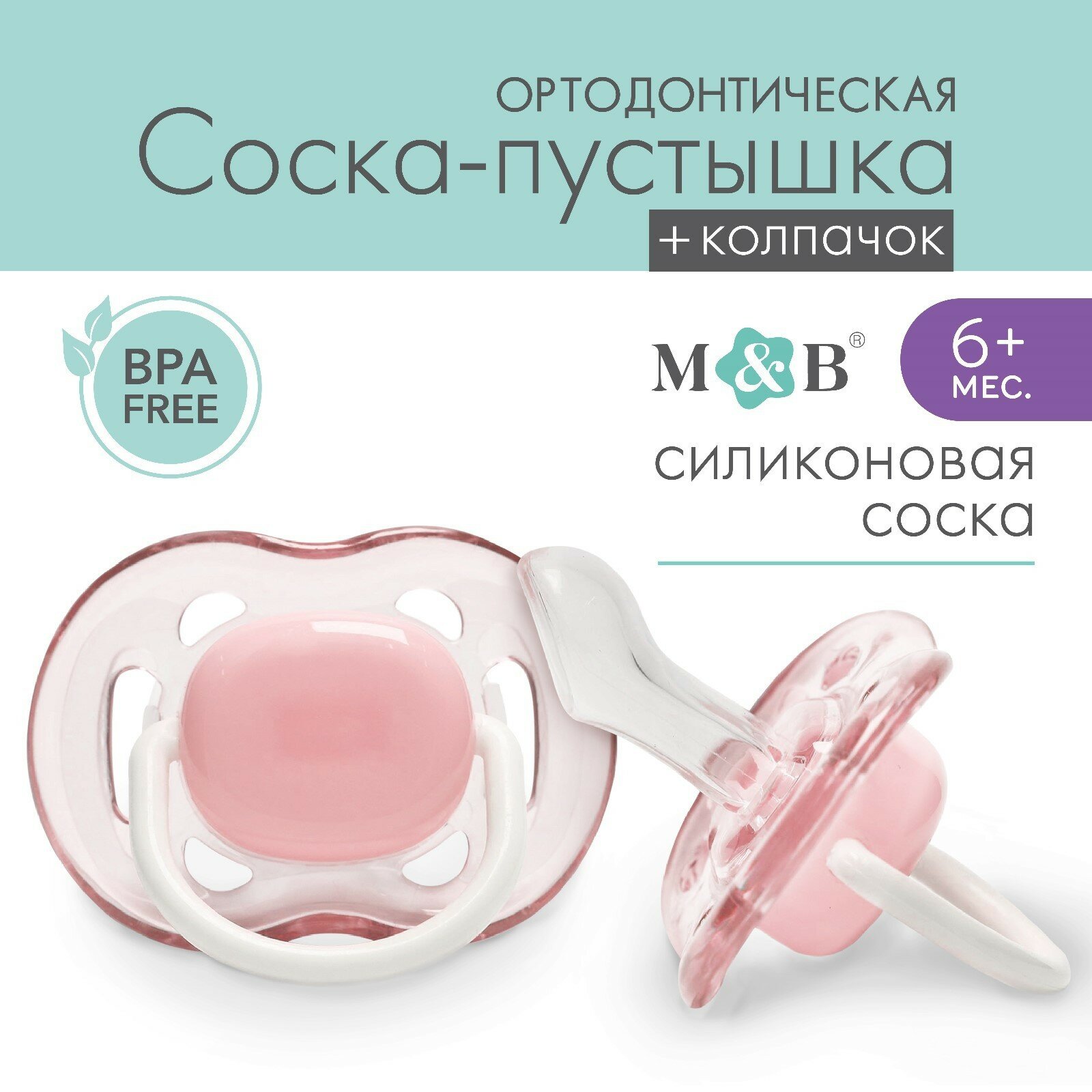 Mum&Baby Соска-пустышка ортодонтическая, силикон, от 6 мес., с колпачком, цвет розовый