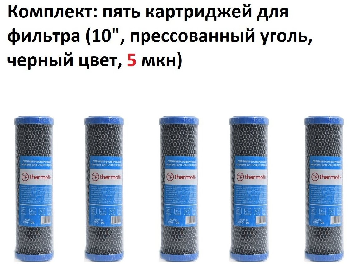 Купить Картридж для фильтра 5 шт. "Thermofix" (10", прессованный уголь, черный цвет, 5 мкн)(CTO-10В)/для очистки воды/запасной картридж Slim Line