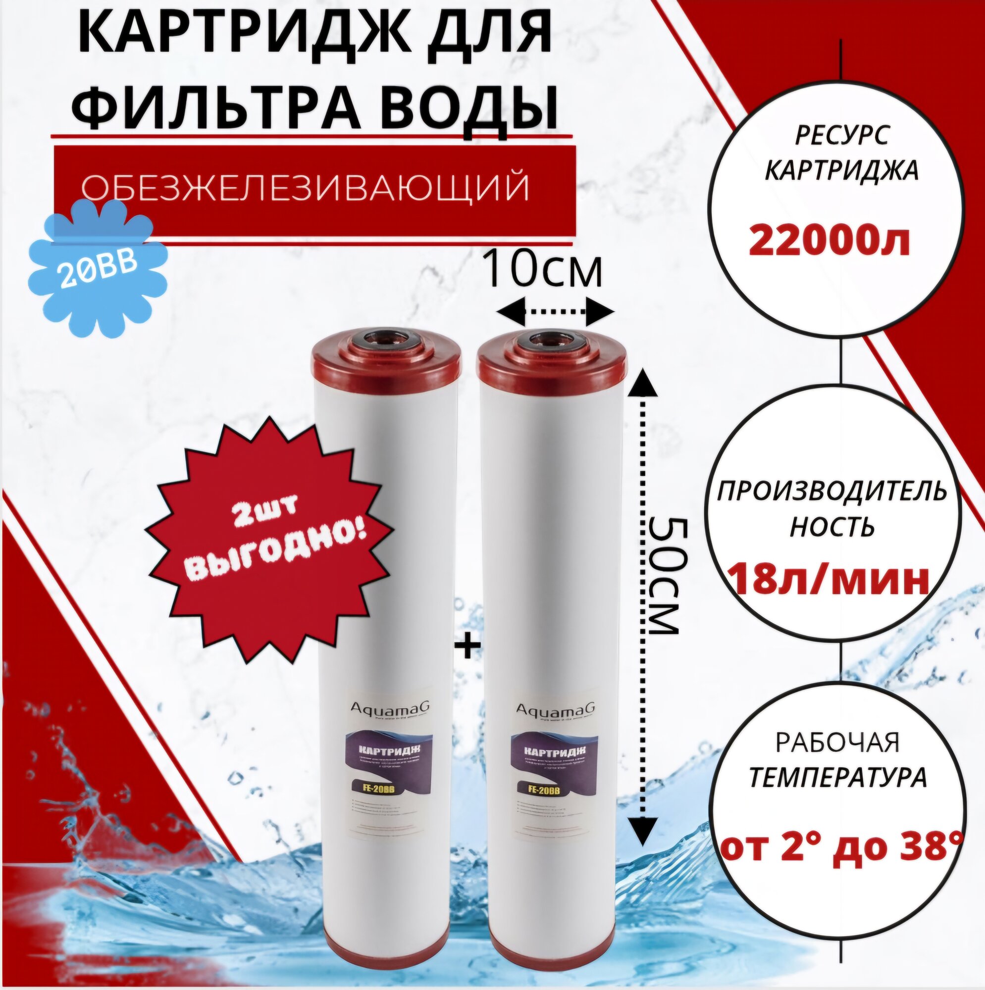 Картридж для фильтра воды обезжелезивающий FE 20ВВ (2 штуки) интересное: