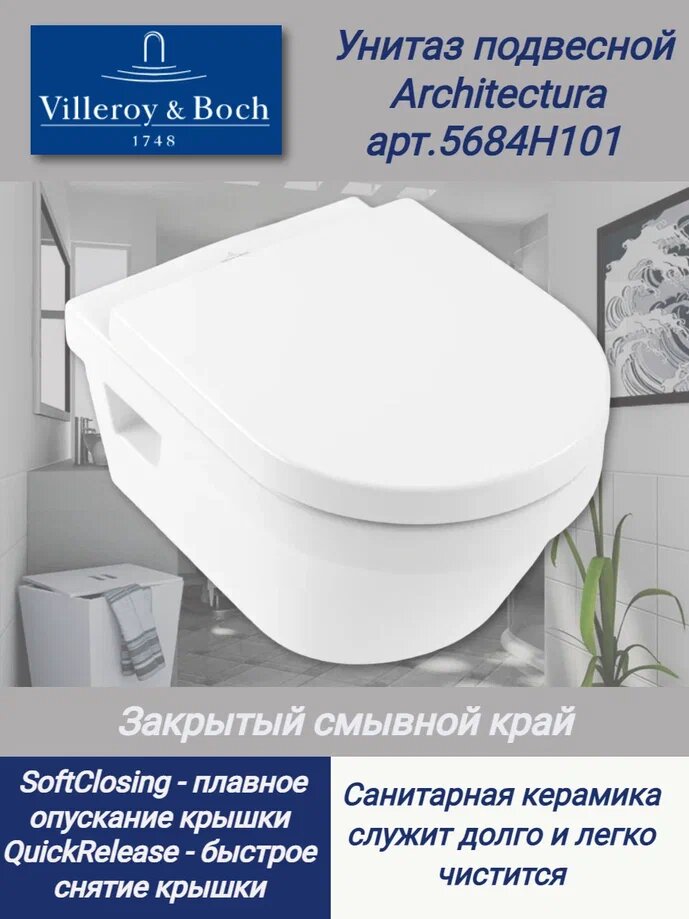 Подвесной унитаз Villeroy & Boch Omnia Architectura 5684 H101 5684H101 с сиденьем микролифт