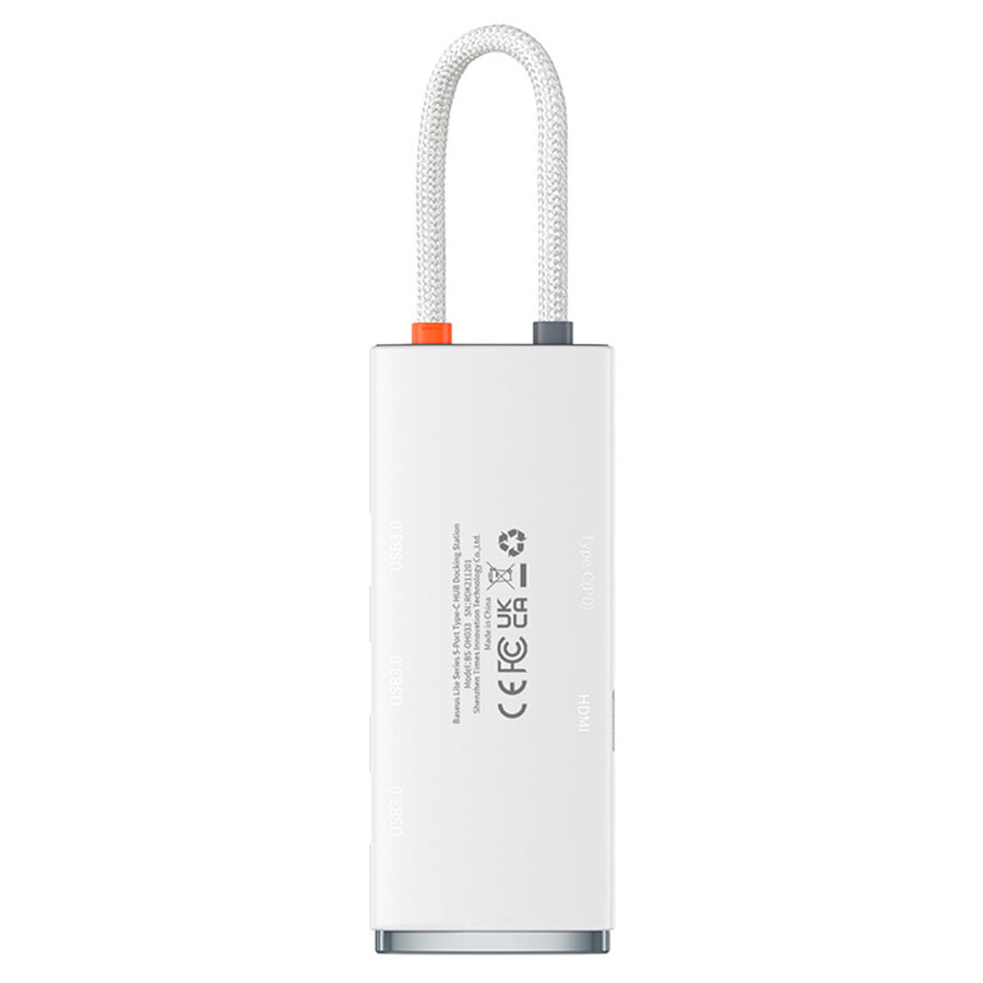 Хаб Baseus Lite Series 5-Port Type-C HUB Docking Station (Type-C to HDMI+USB3.0x3+PD) White (WKQX040002)