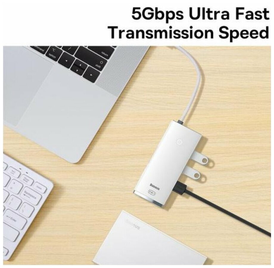 Хаб Baseus Lite Series 5-Port Type-C HUB Docking Station (Type-C to HDMI+USB3.0*3+PD) White (WKQX040002)