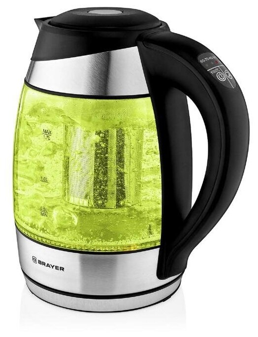 Чайник электрический BRAYER BR1021, стекло, 1.7 л, 2200 Вт, регулировка t°, серебристый интересное: