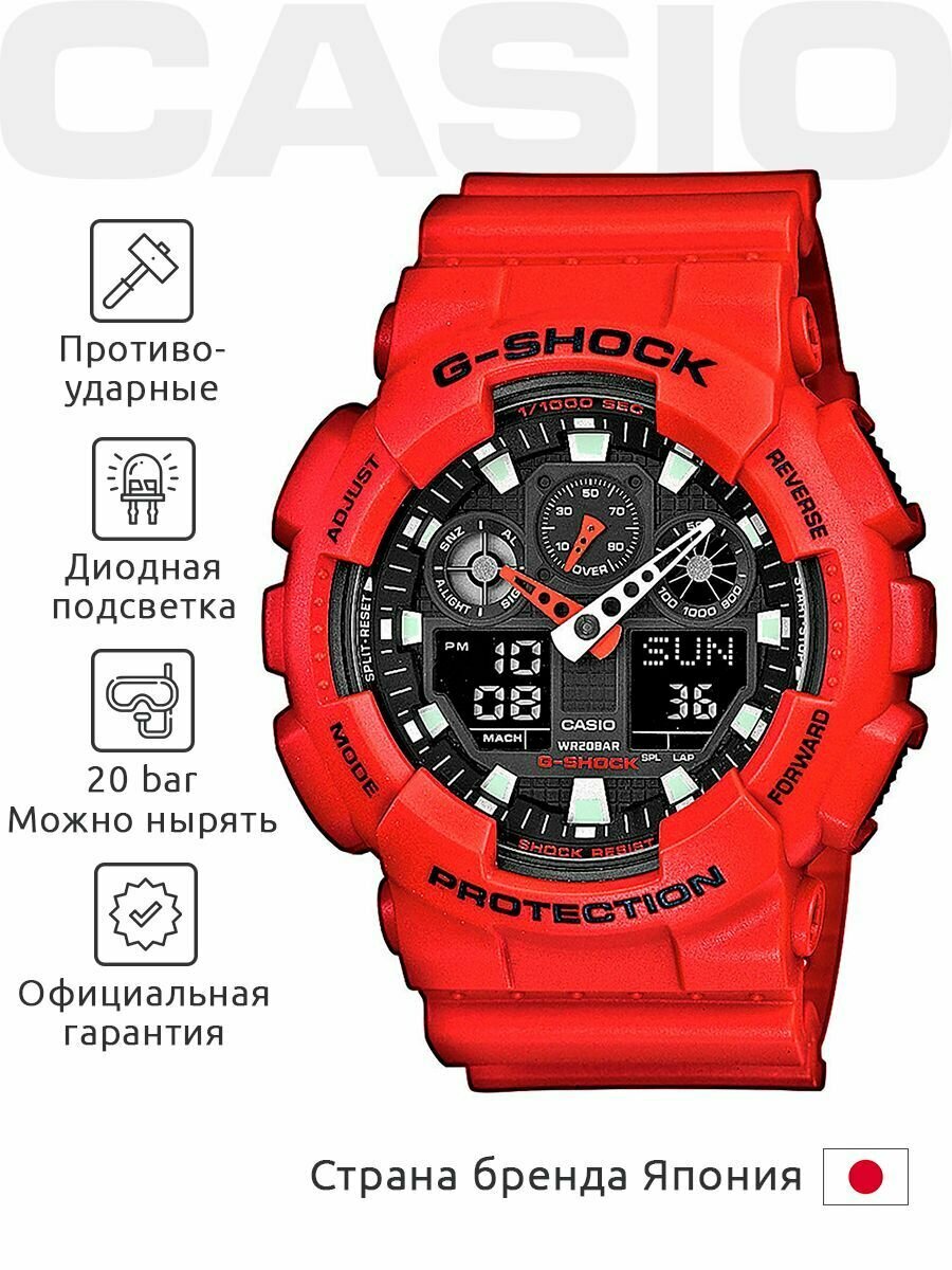 Наручные часы CASIO G-SHOCK GA-100B-4A красный , Размер ONE SIZE