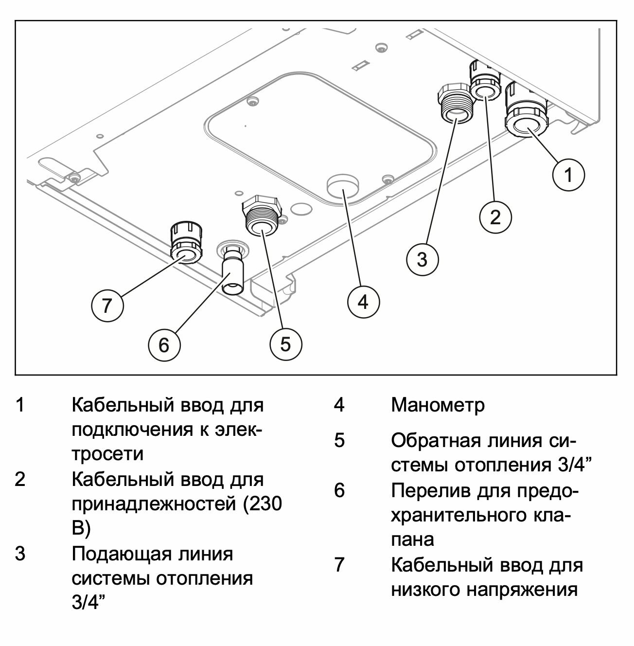| Особенности | воздухоотводчик, встроенный расширительный бак, встроенный циркуляционный насос, манометр, предохранительный клапан, разъем для подключения внешнего управления, термометр |