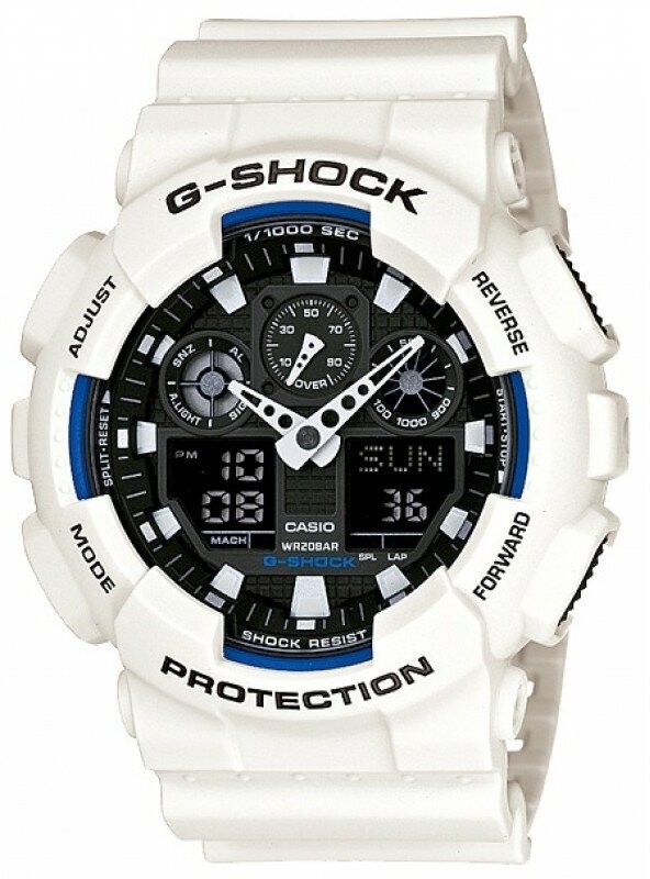 Наручные часы CASIO G-Shock GA-100B-7A мужские, кварцевые, будильник, секундомер, таймер обратного отсчета, водонепроницаемые, противоударные, подсветка стрелок, подсветка дисплея, белый