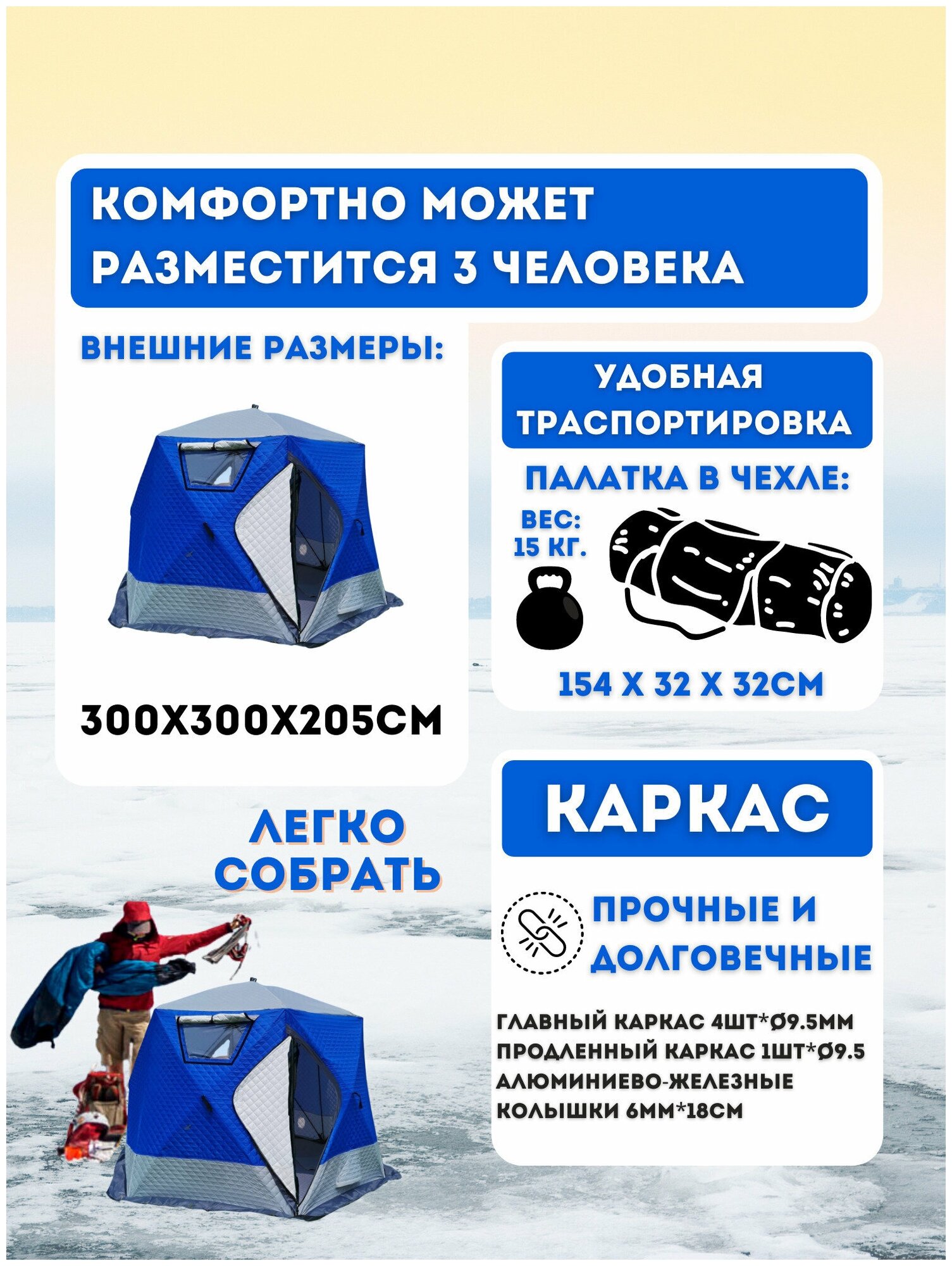 Утепленная трёхслойная Зимняя палатка 2020 / Палатка для зимней рыбалки Mircamping 2020, Трехслойная 4-х местная палатка куб для зимней рыбалки интересное: